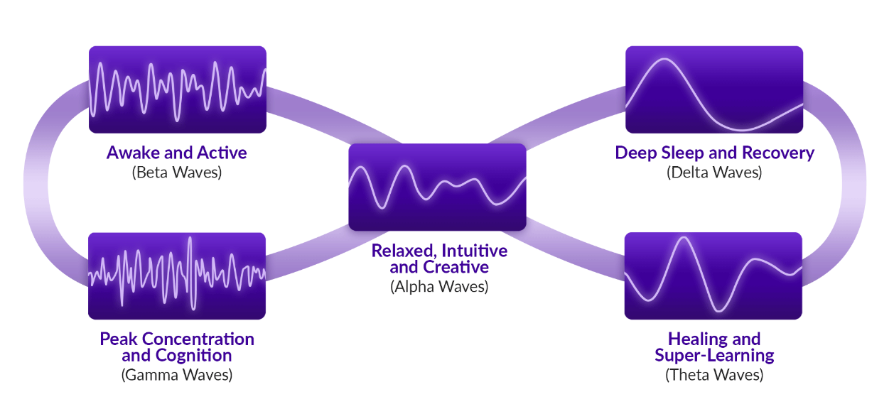 Carefully calibrated frequencies (binaural beats and isochronic tones) help guide the brain into states associated with calm, focus, creativity, or rest. This process encourages more efficient transitions between brainwave patterns, improving adaptability and cognitive performance.